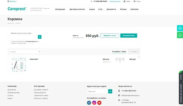 • Выполнили аудит сайта, проанализировали нишу и конкурентов. Учли требования заказчика и приняли решение перенести сайт на cms Bitrix и полностью его переделать. Максимальный упор при переделке сайта был сделан на проработку оформления заказа.