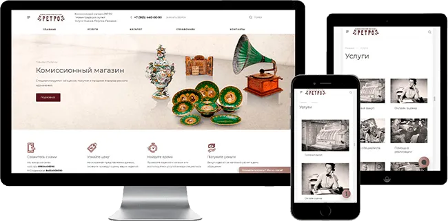 Задачи: Клиент обратился в нашу компанию с просьбой создать сайт антикварной лавки и комиссионного магазина 2 в 1, разработать индивидуальный дизайн, проработать и наполнить главную страницу и страниц услуг для возможности дальнейшего продвижения ресурса в поисковых системах.